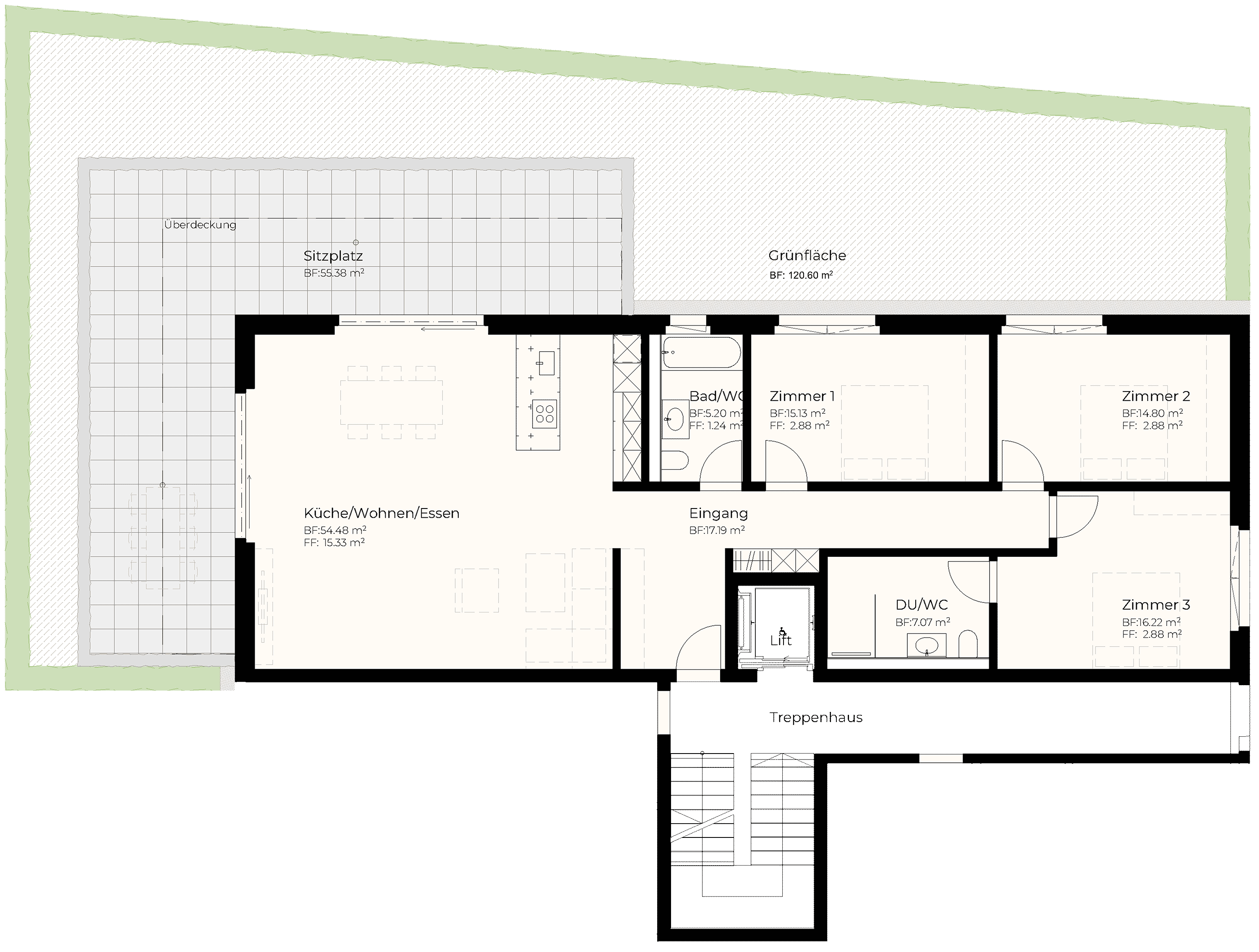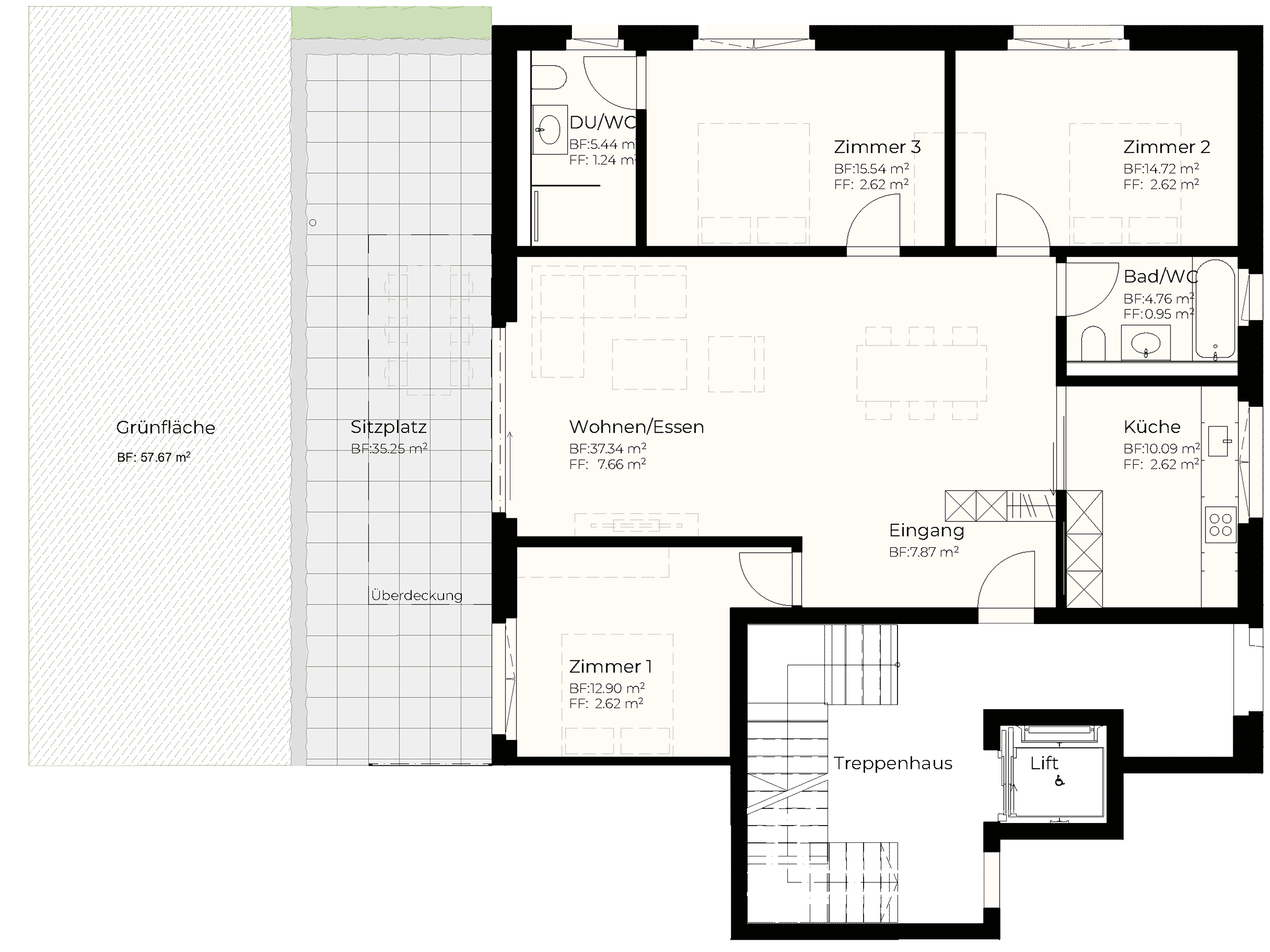 | EG | 3.5 | 120.10 m2 | 30.88 m2 | 67.93 m2 | 11.43 m2 | 1'140'000 |
