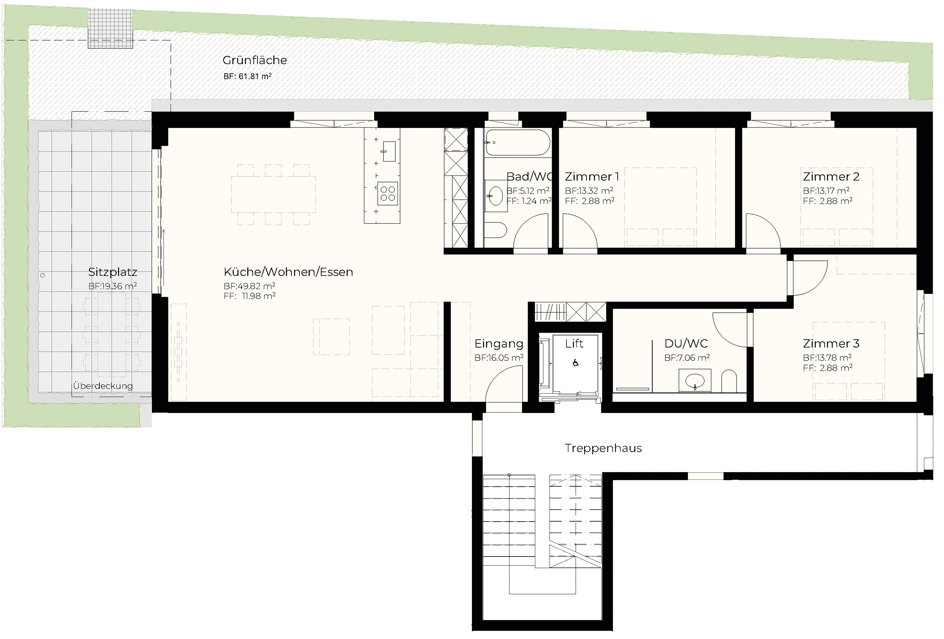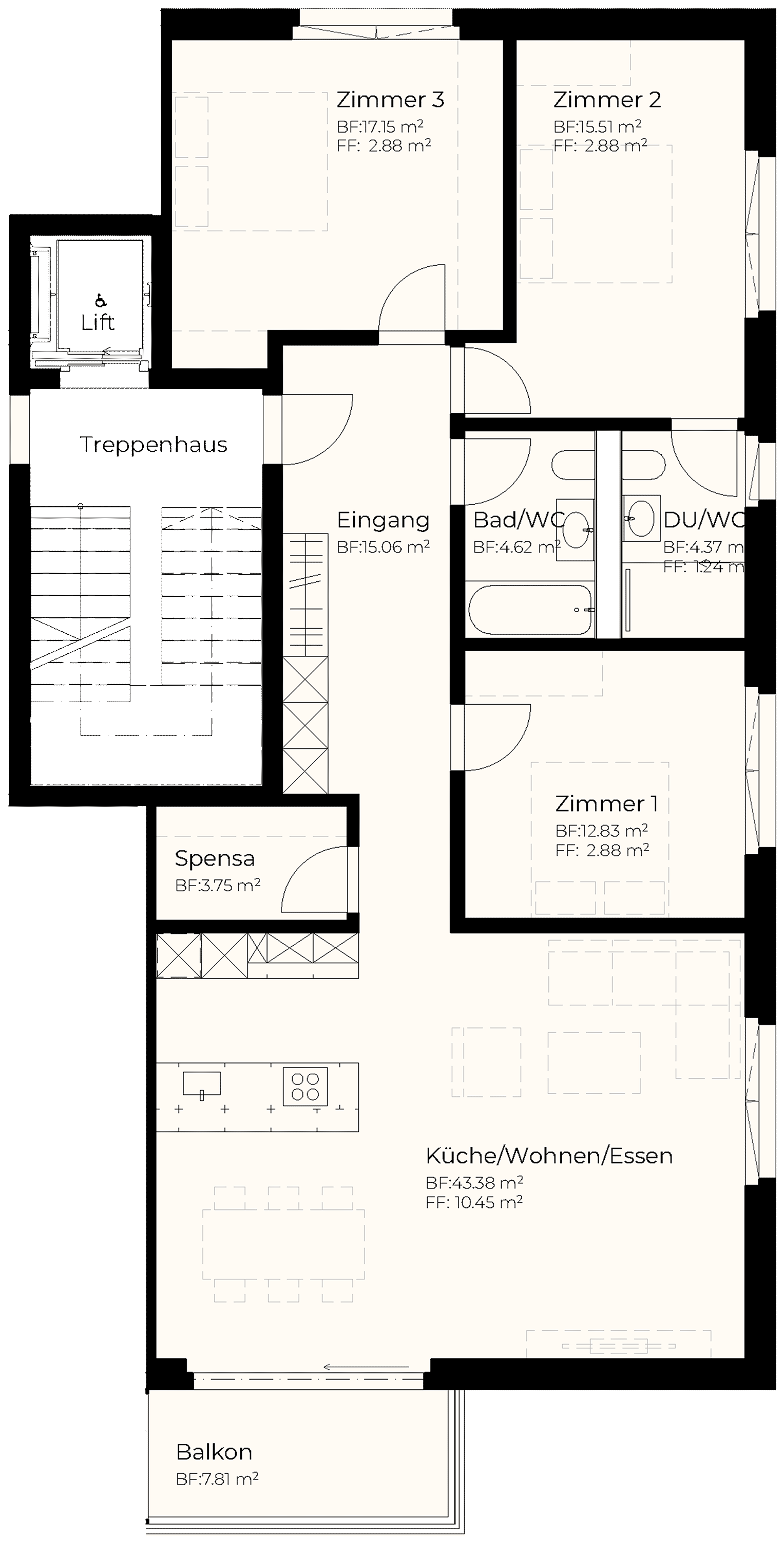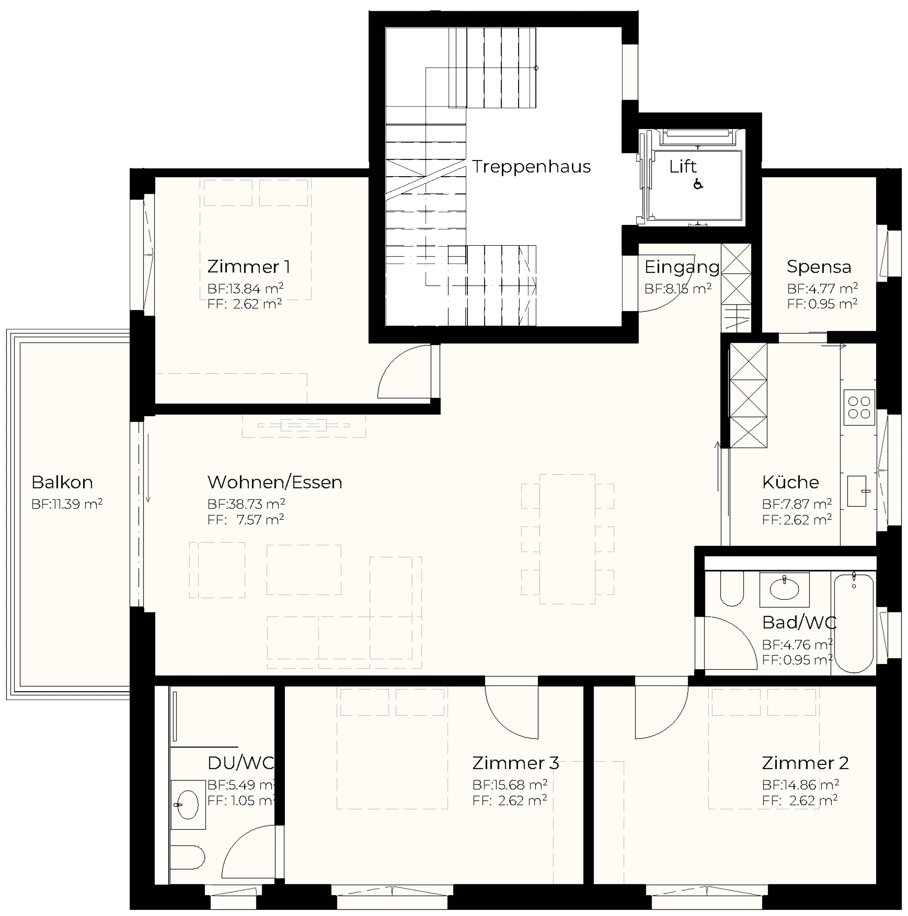 | 1. OG | 3.5 | 105.31 m2 | 9.81 m2 | m2 | 14.01 m2 | 975'000 |