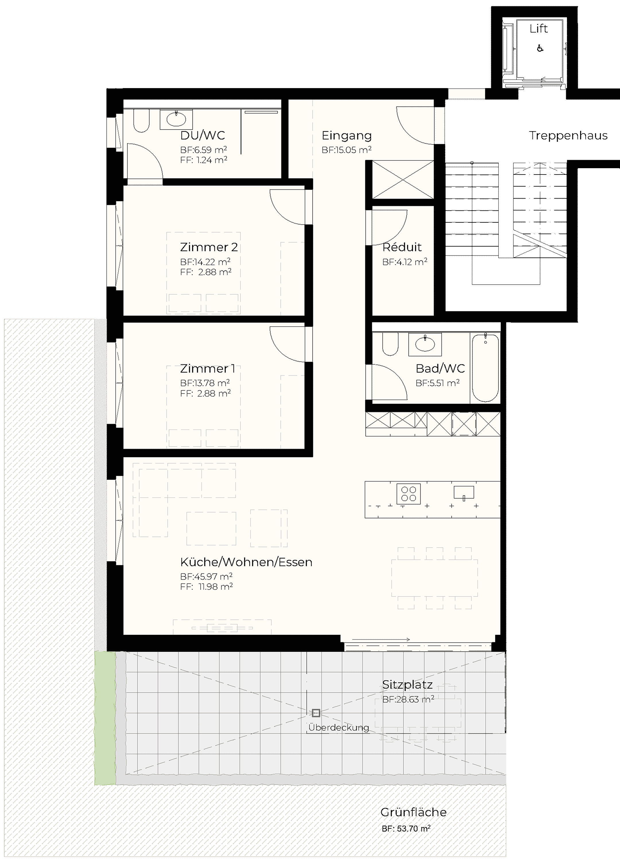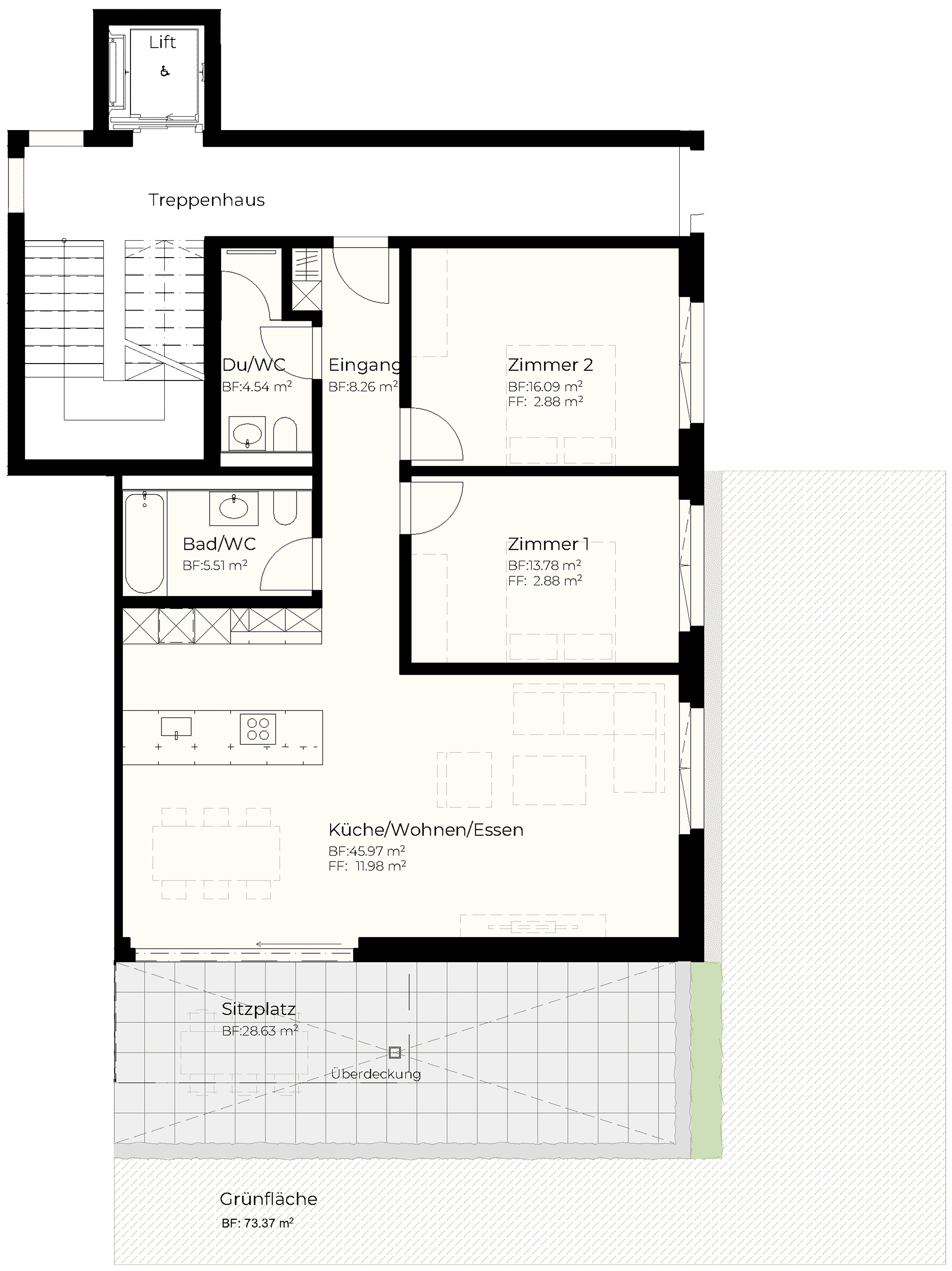 | EG | 3.5 | 105.24 m2 | 28.63 m2 | 53.7 m2 | 10.62 m2 | reserviert |