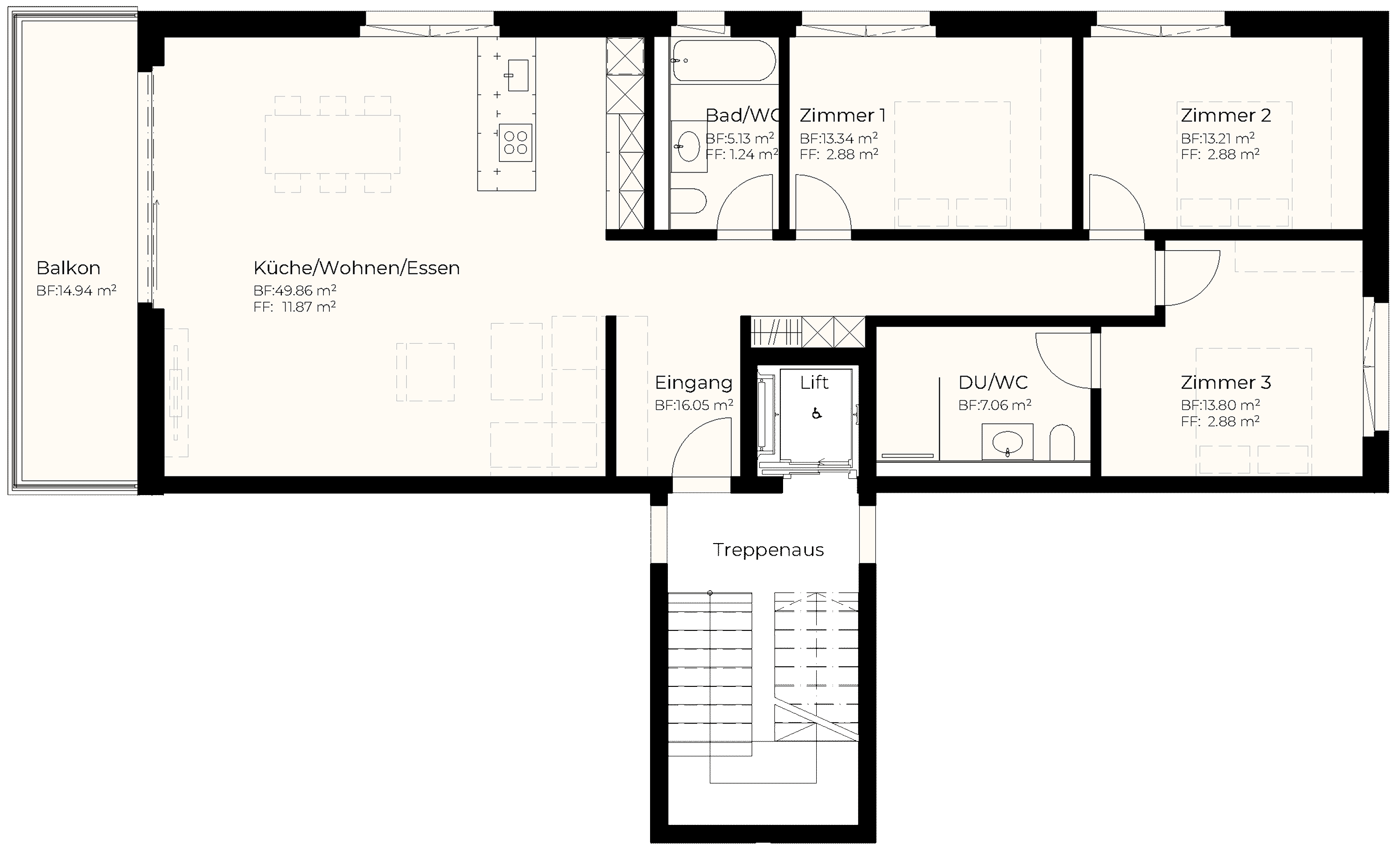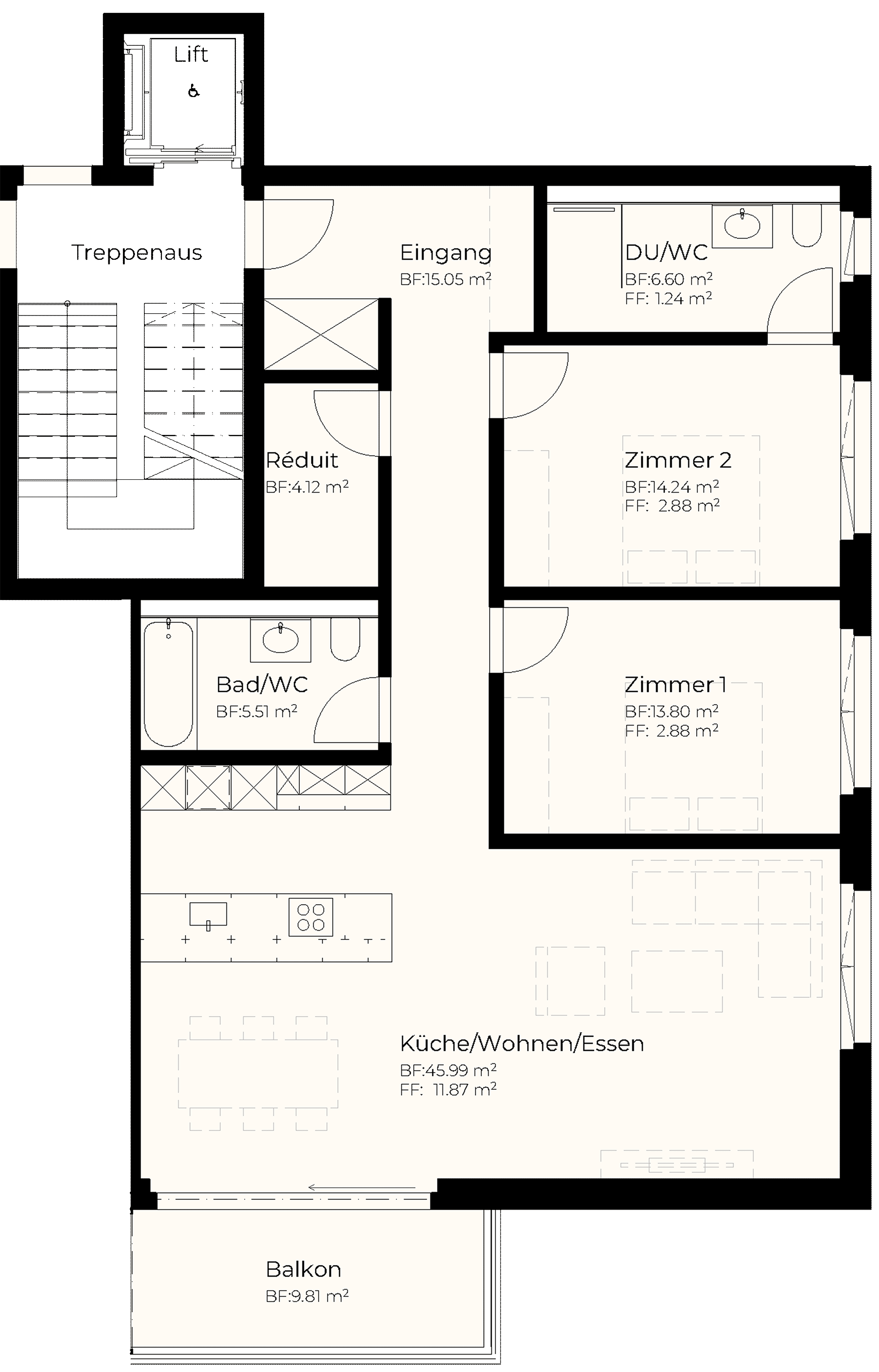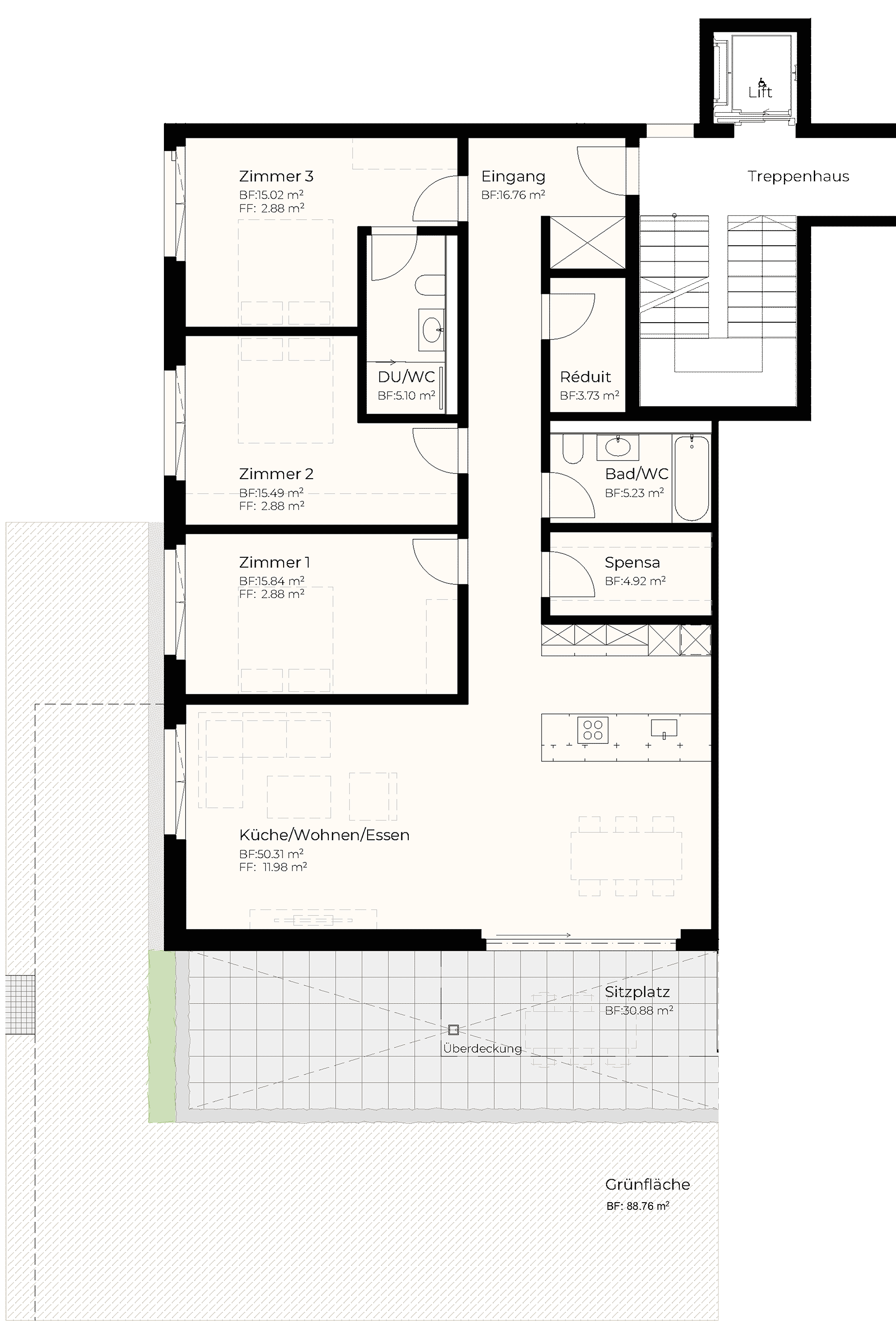 | EG | 4.5 | 132.40 m2 | 30.88 m2 | 88.76 m2 | 15.66 m2 | 1'245'000 |