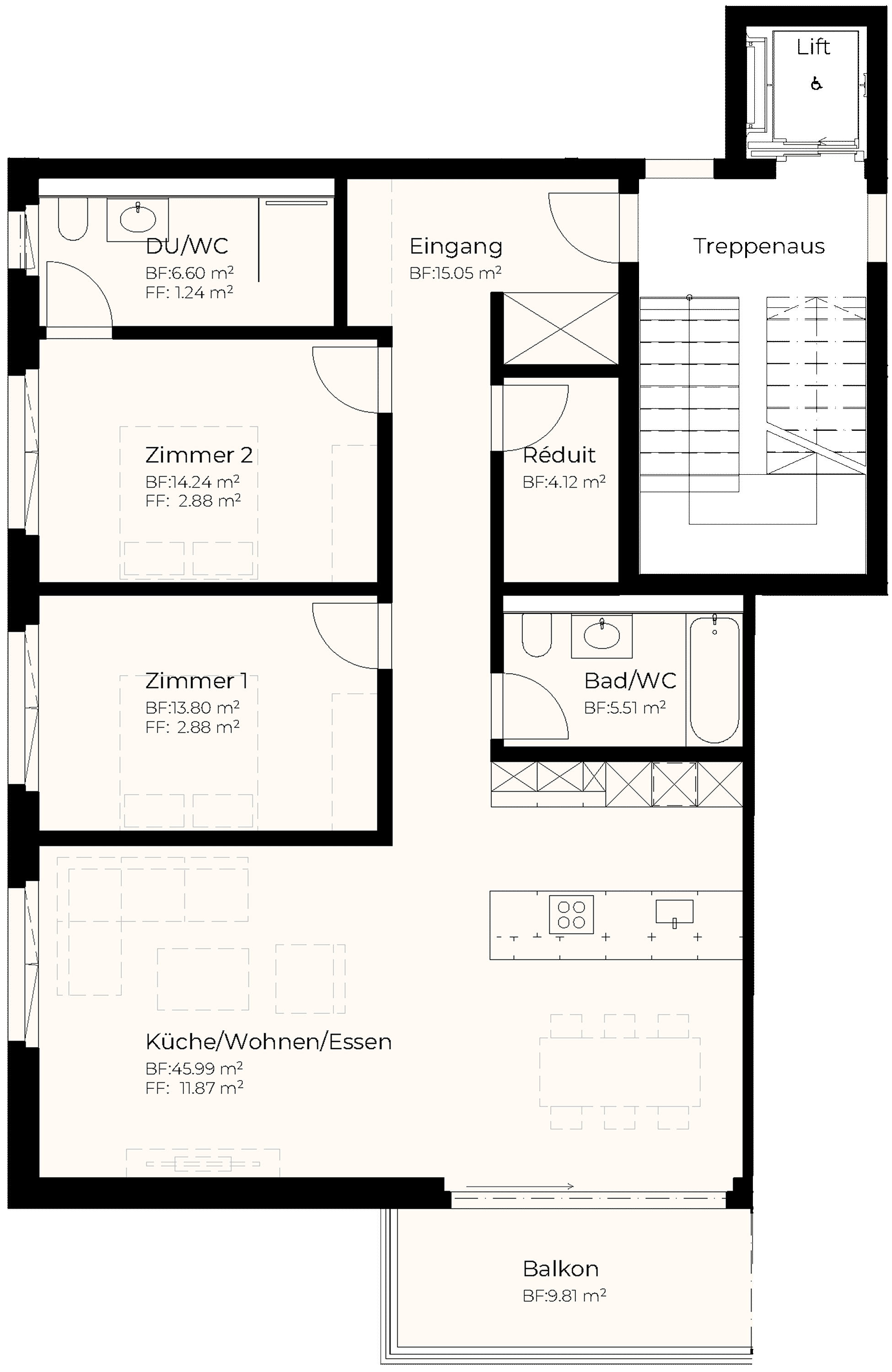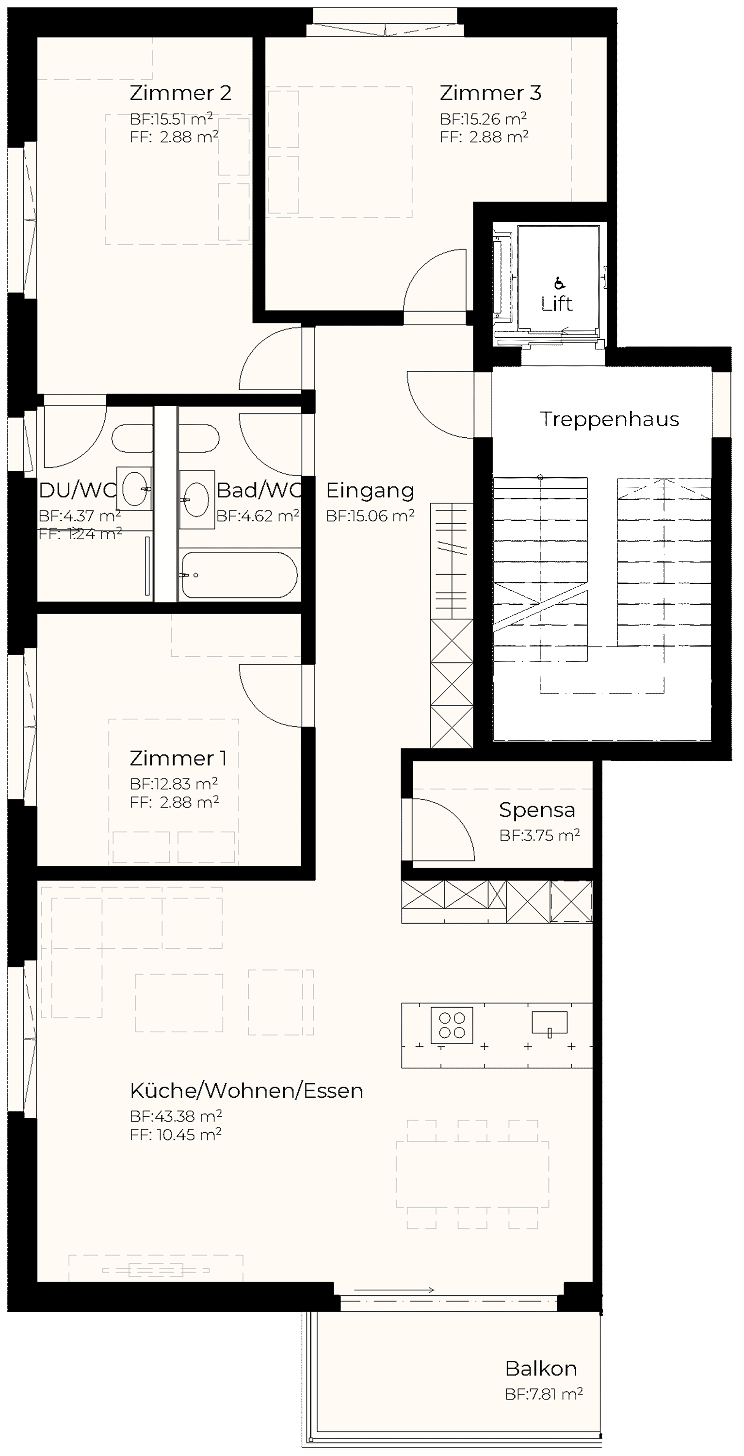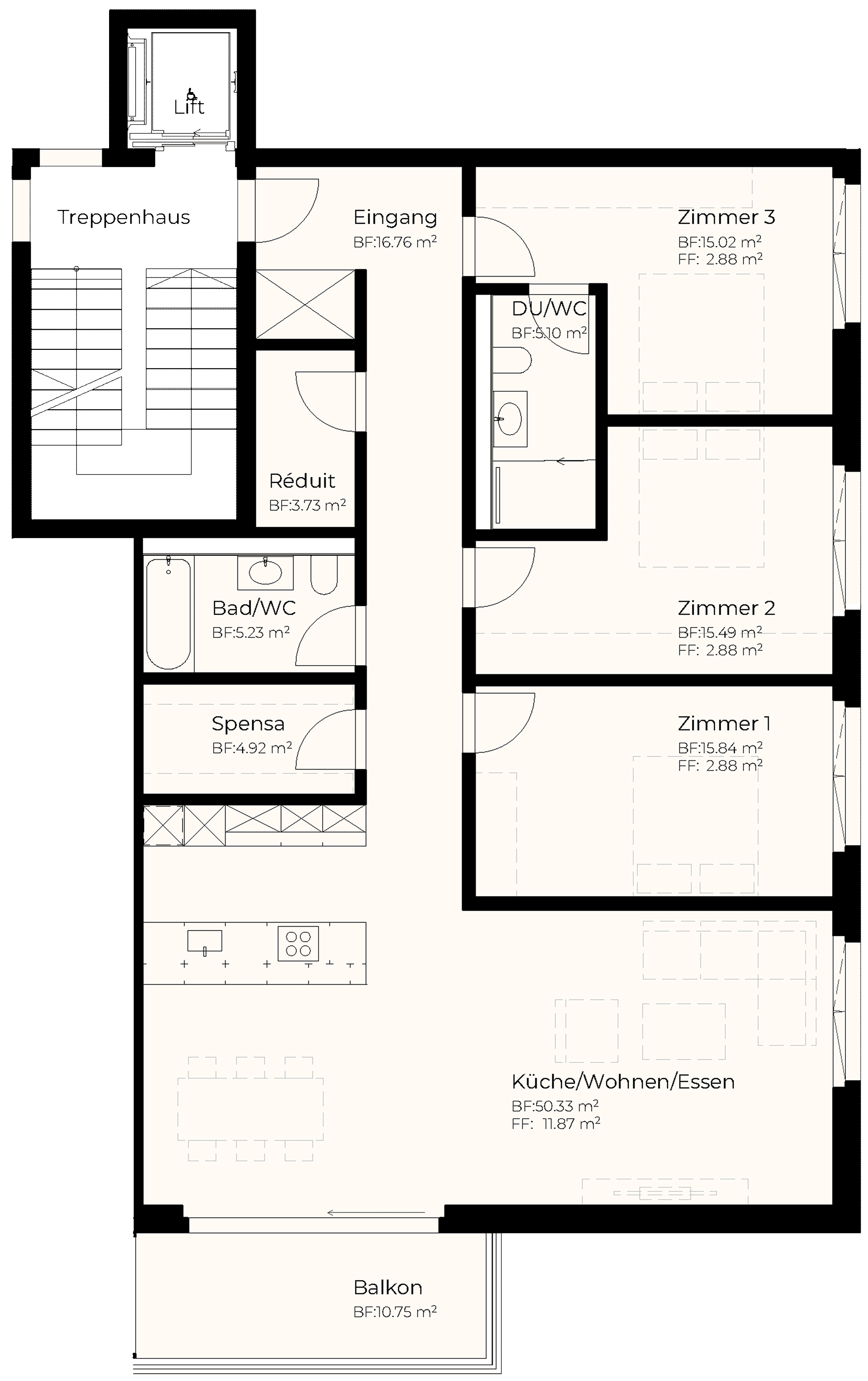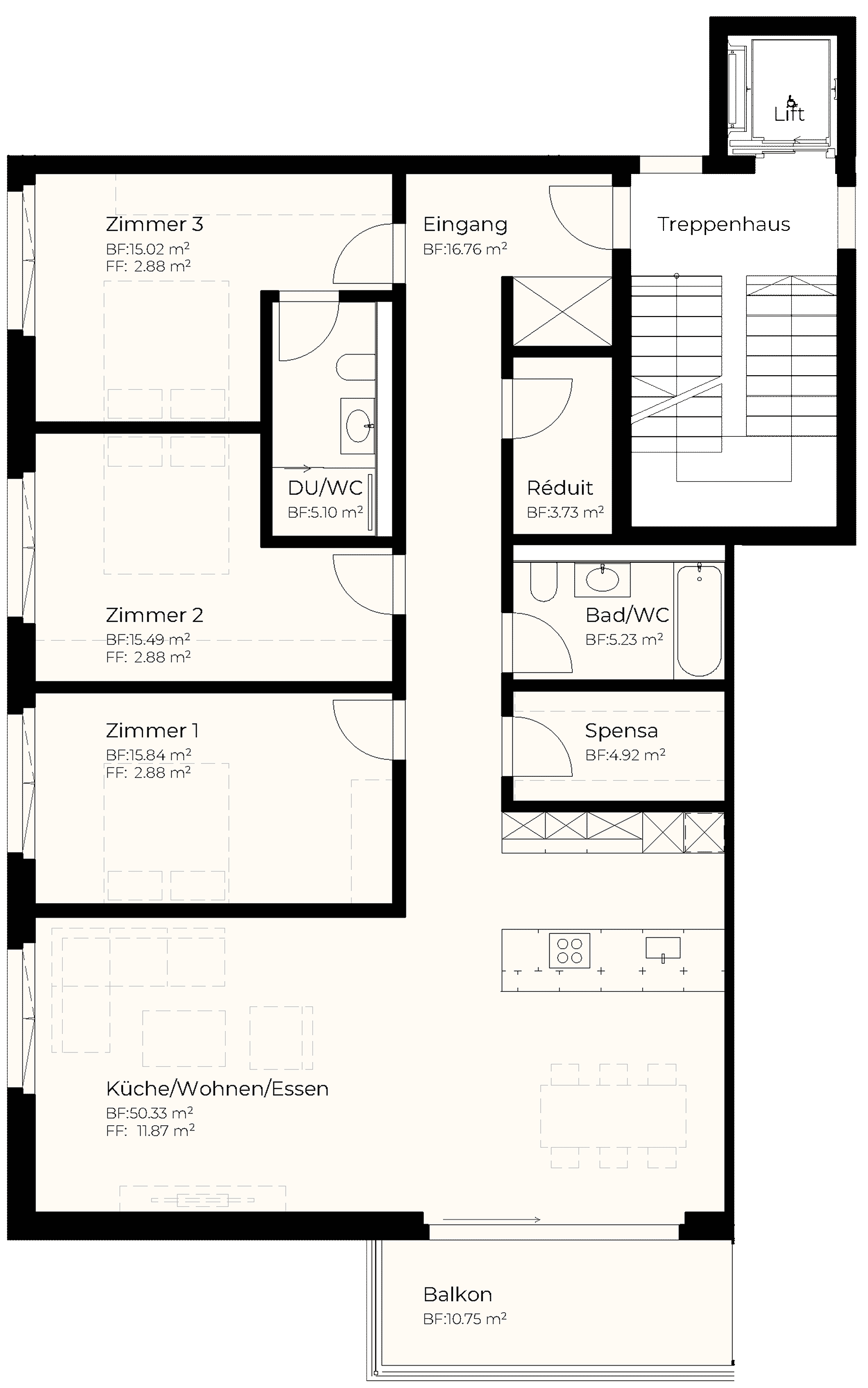 | Attika | 3.5 | 80.65 m2 | 28.96 m2 | m2 | 14.02 m2 | 805'000 |