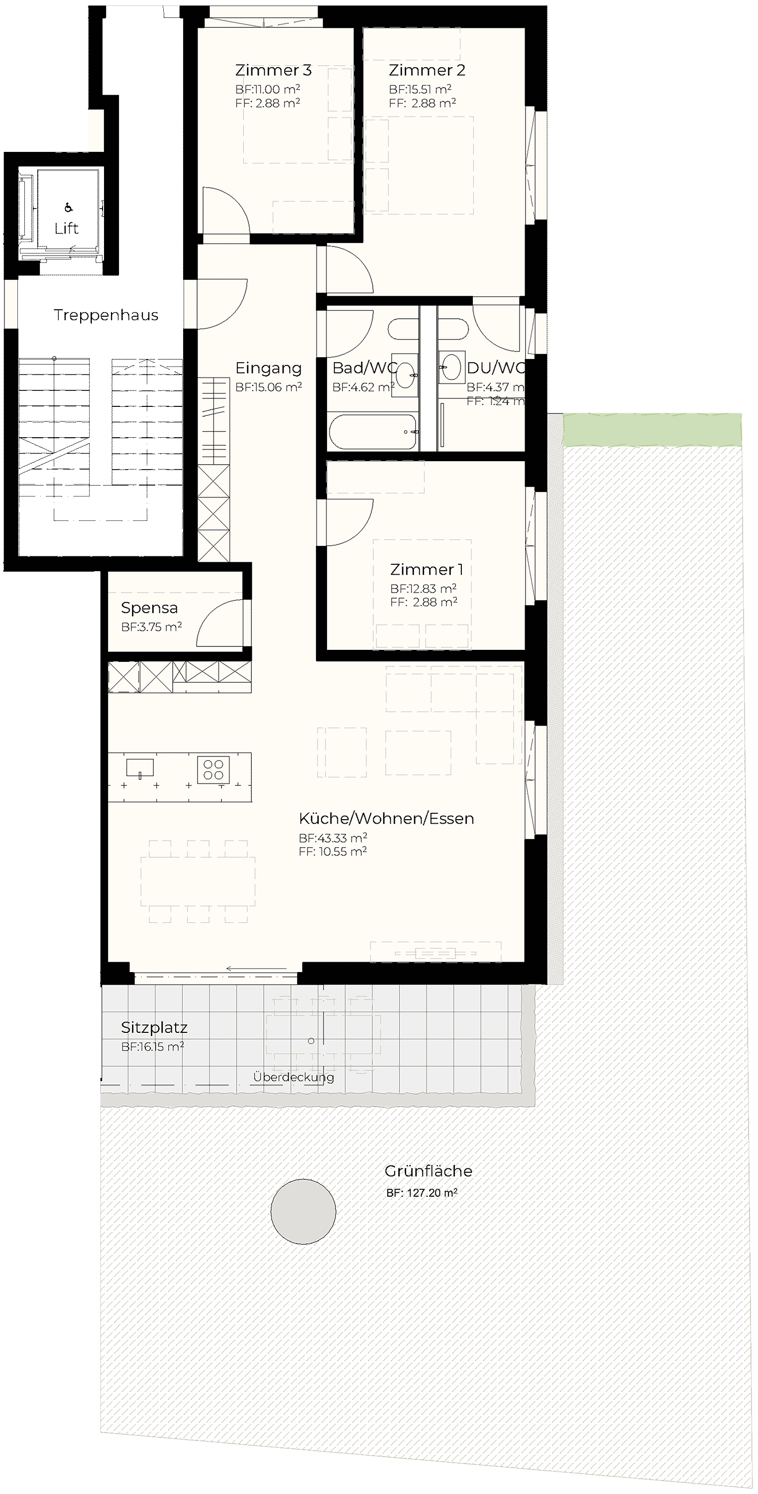 | EG | 4.5 | 110.47 m2 | 16.15 m2 | 127.20 m2 | 11.54 m2 | reserviert |